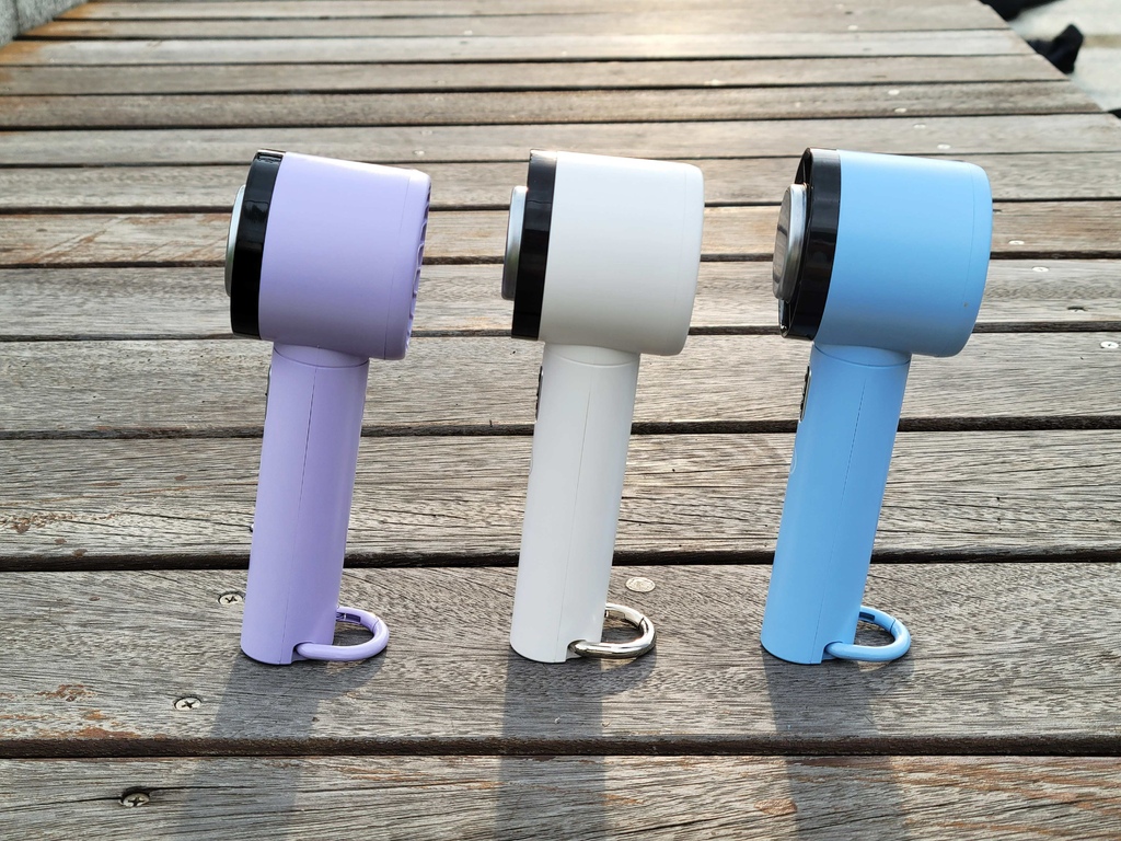 台灣的夏天真的熱爆了,只要一走出家門,大粒汗小粒汗就像下雨一樣流不停,臉上和脖子的汗珠總讓我顯得好狼狽.... 以前買過幾支手持風扇,但用起來總是不甚滿意,不是風力太弱,就是電池不夠力,或是品質參差不齊,而最麻煩的問題就是:吹出的風總是熱呼呼,根本越吹越熱!