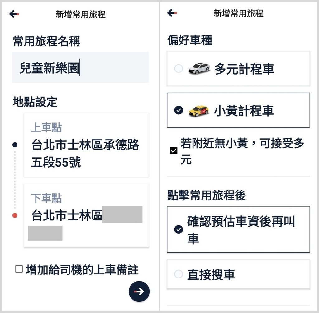 再說說我最近發現的另一個小撇步,《yoxi》APP裡的「常用行程」功能,簡直方便到不行,設定一次常用行程,以後出門一鍵叫車就搞定,這樣的叫車速度讓我瞬間覺得自己像個VIP啊!