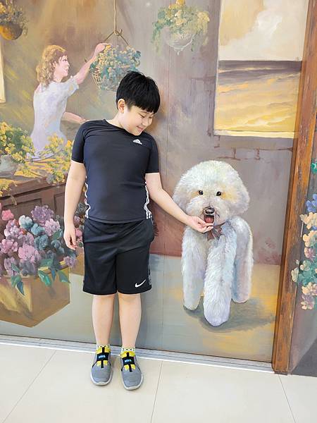 裝潢好別緻,牆上還有可愛的比熊畫栩栩如生,甫甫還忍不住跟它拍了合照😁 |
