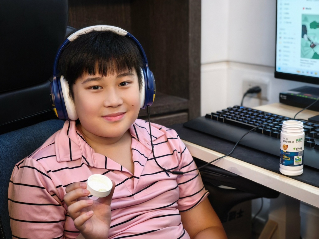 像是目前才剛上國一的甫甫,每天上學時需要大量思考,放學後有許多作業要寫、還必須開電腦查資料,多多補充魚油,對孩子的學習與成長也很不錯,每日2粒,飯後食用,小小一顆,就連甫甫這個年紀的孩子也覺得很好吞服!