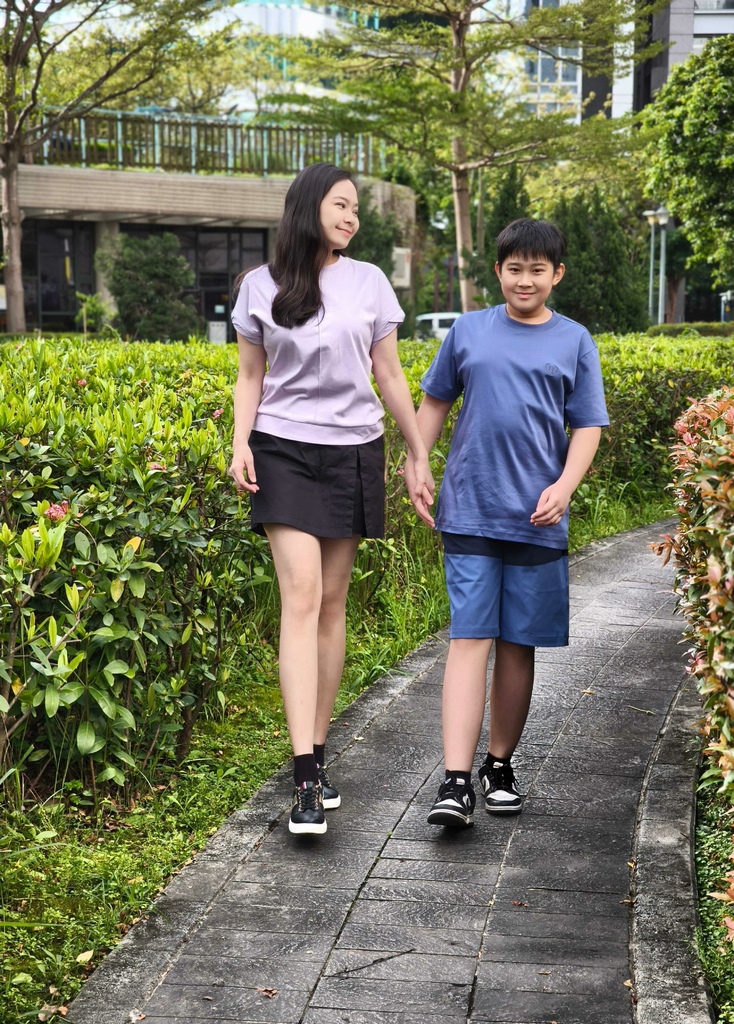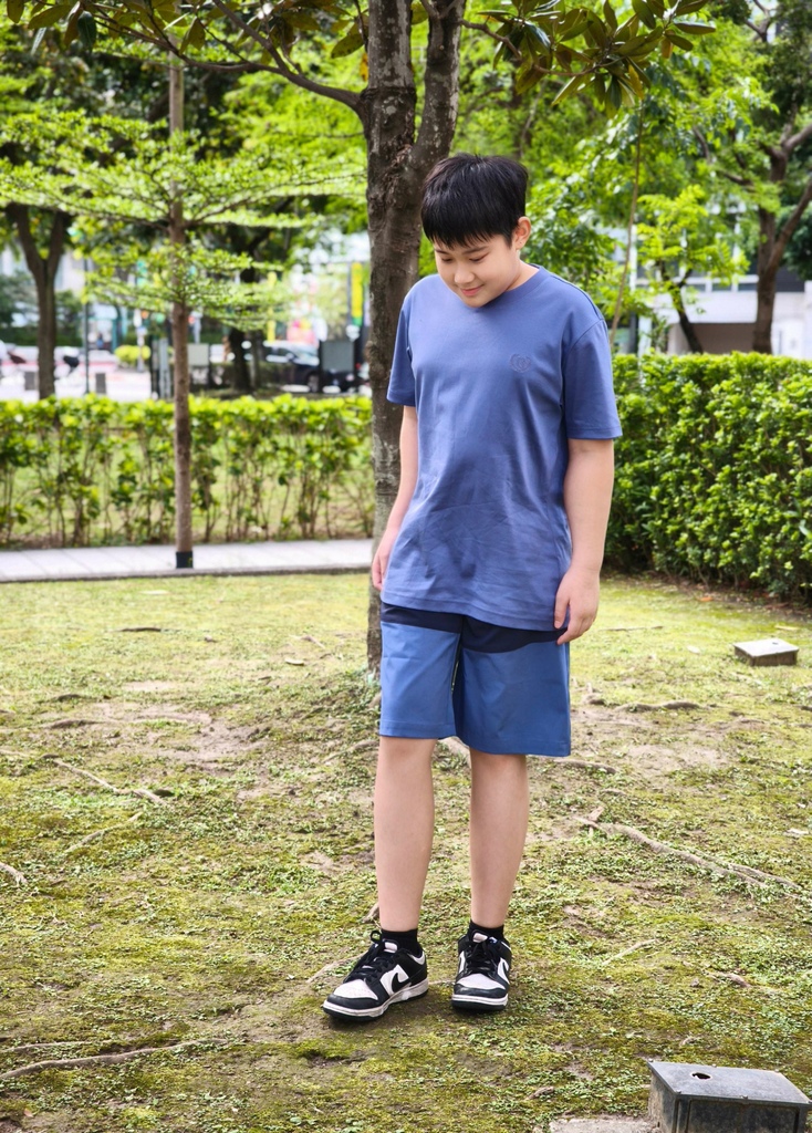 而我們家的高中生鏞鏞,最近超有自己的穿搭主見~不喜歡太厚重、不喜歡悶熱,所以我幫他挑了一件 Liquid Touch系列的圓領寬鬆短袖上衣,布料超透氣,打球運動都不怕濕黏,他穿了幾次之後也好喜歡,我看他自己搭運動褲帥氣出門,忍不住覺得我們家也有時尚潮男哩😎