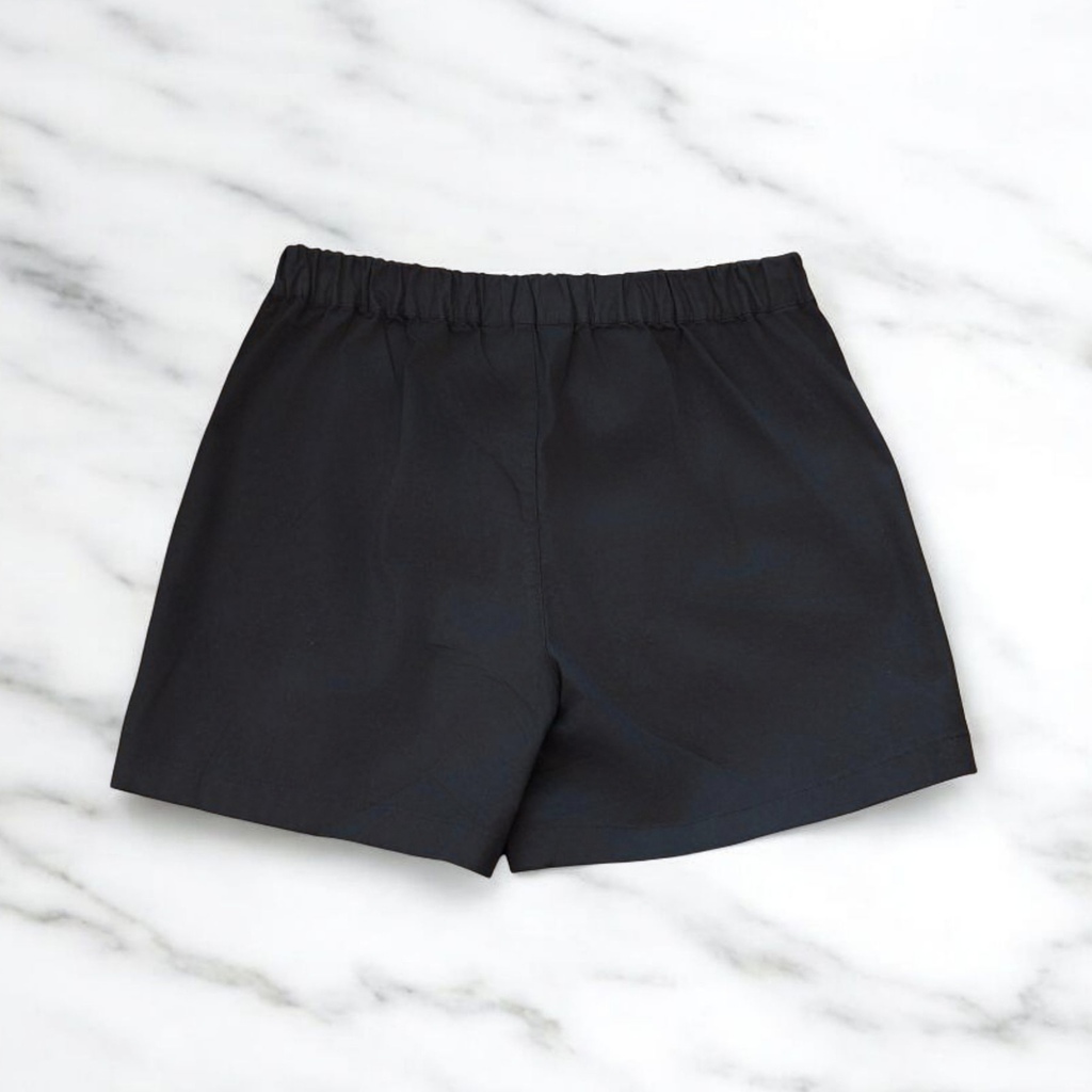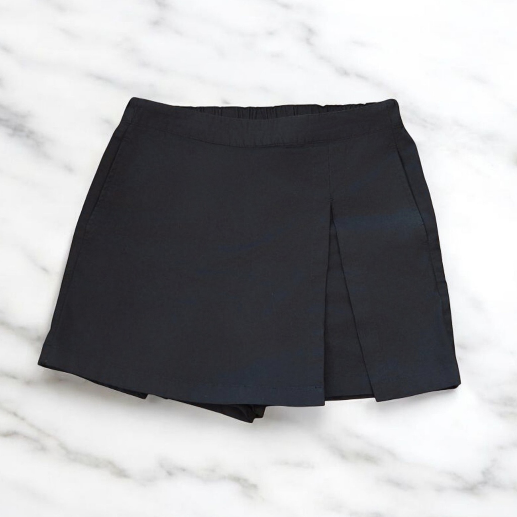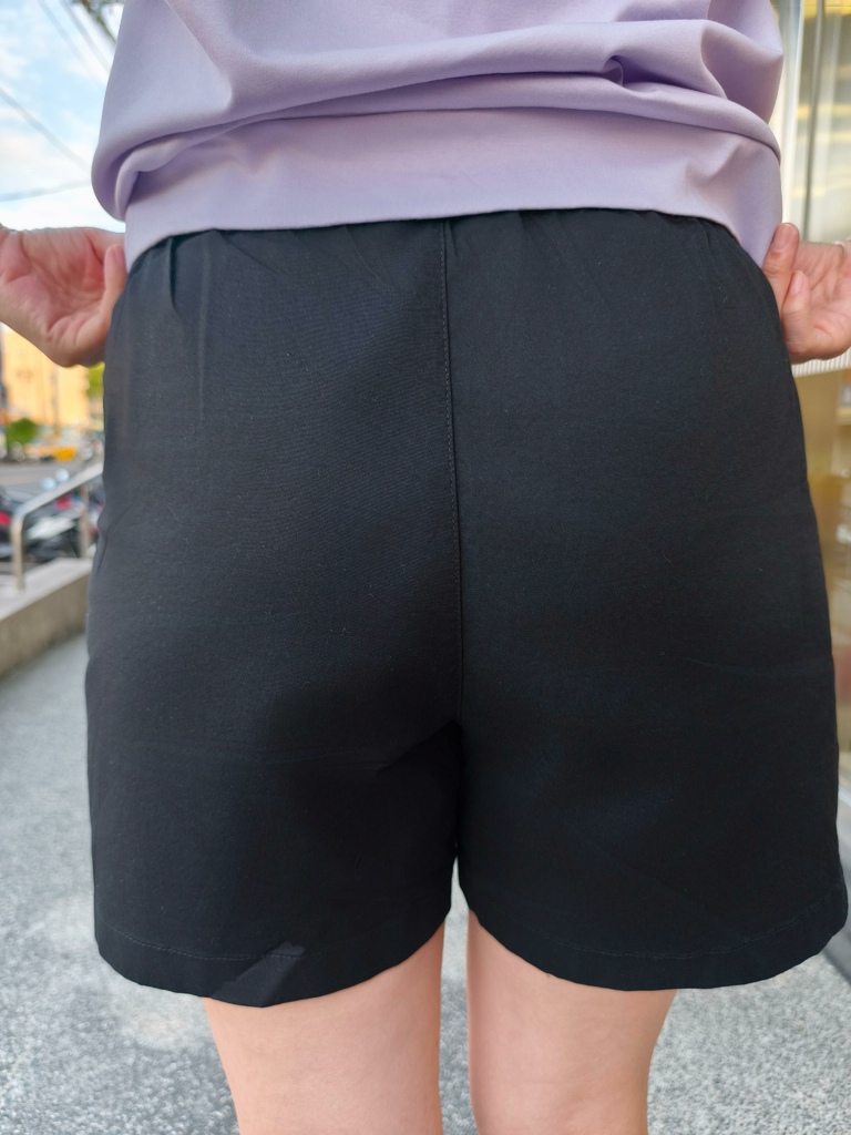「棉質卡其休閒短褲裙」也真的超舒服,布料是柔軟兼具硬挺感的棉質,穿起來有夠親膚,鬆緊腰頭設計完全不勒肚子,跑跳都不卡!它前面看起來就是一件氣質滿滿的小裙子,走起路來擺動超優雅,但轉到背面一看,嘿嘿~其實是褲子設計,兩側還有口袋,這種前裙後褲的巧思,不只造型感十足,還超級實穿~