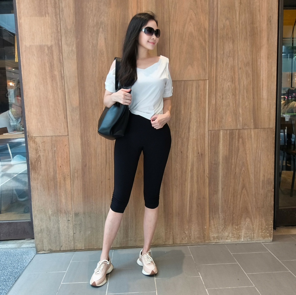 視覺修飾力超強!專為東方女性身形設計,六分褲長+切角剪裁,把我的小水桶腰瞬間收好收滿,大腿、臀部線條超順超美啊~~
